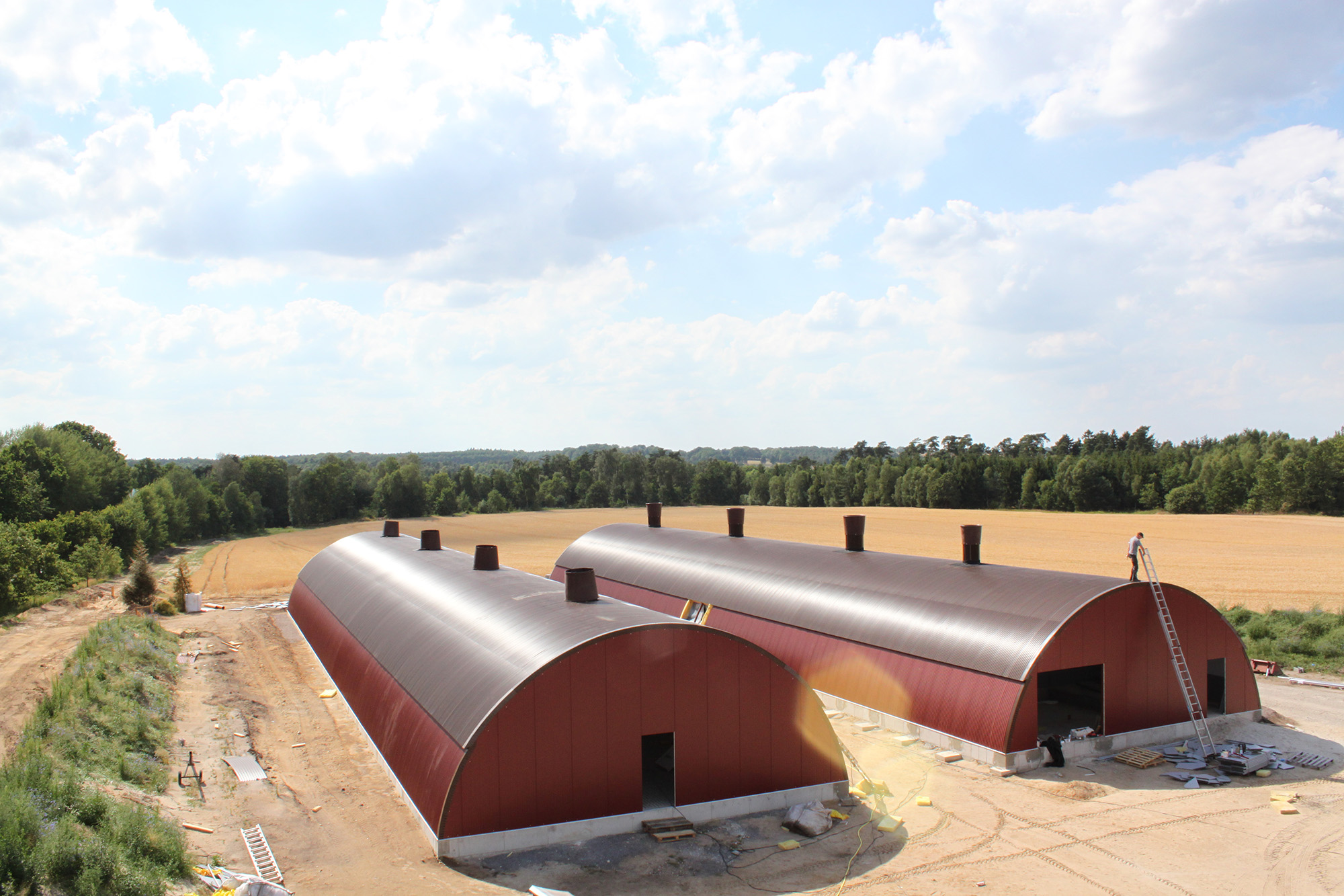 Auch die Errichtung / Montage nimmt erheblich weniger Zeit in Anspruch. Die Hülle für einen 600er-Maststall (12x55 Meter) bei Bremen wurde beispielsweise von drei Monteuren in 17 Tagen erstellt.