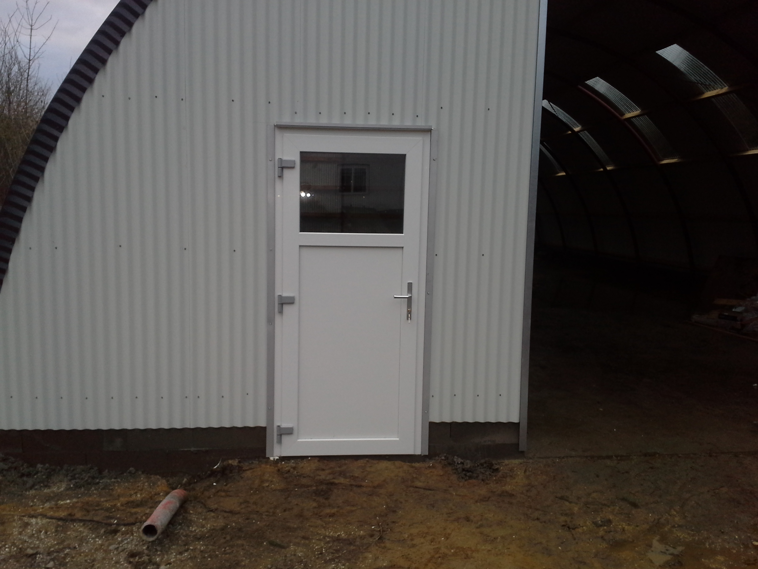 Neben den fast obligatorischen Schiebetüren (optional ist eigenes Sektionaltor möglich) bieten wir drei verschiedene Fluchttüren an.